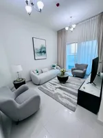 For annual rent, a two-bedroom apartment with a hall in the Gulf Tower, air conditioning and free parking, for 35 thousand, unfurnished, for 45 thousand, furnished, first resident
