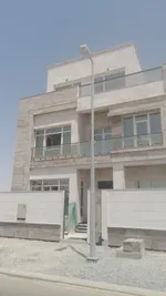For sale a new villa in Sharjah located in Al Hoshi area Ground + first + 50% roof Consists of: 5 master bedrooms