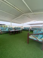 مسوره بجدار وفيها استراحة مكونه من 7 غرف نوم ومجلسين ومطبخ ومكان مخصص للشوي و3 جلسات خارجية وحوضين سباحه