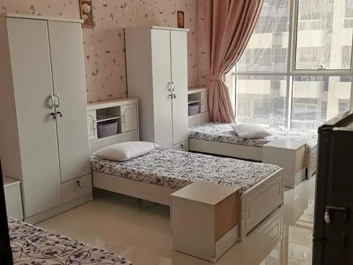 للبيع شقة بابراج صحارى بالنهدة , الشارقة فرصة استثمار بعائد مرتفع الشقة مكونة من غرفتين و غرفة خدامة مع صالة بمساحة واسعة(مقسمة الى غرفة نوم و صالة صغيرة) مطبخ و 3 حمامات الشقة مؤجرة سكن بنات مفروشة فرش راقي الشقة بحالة الجديد المساحة 1500 السعر 1200000
