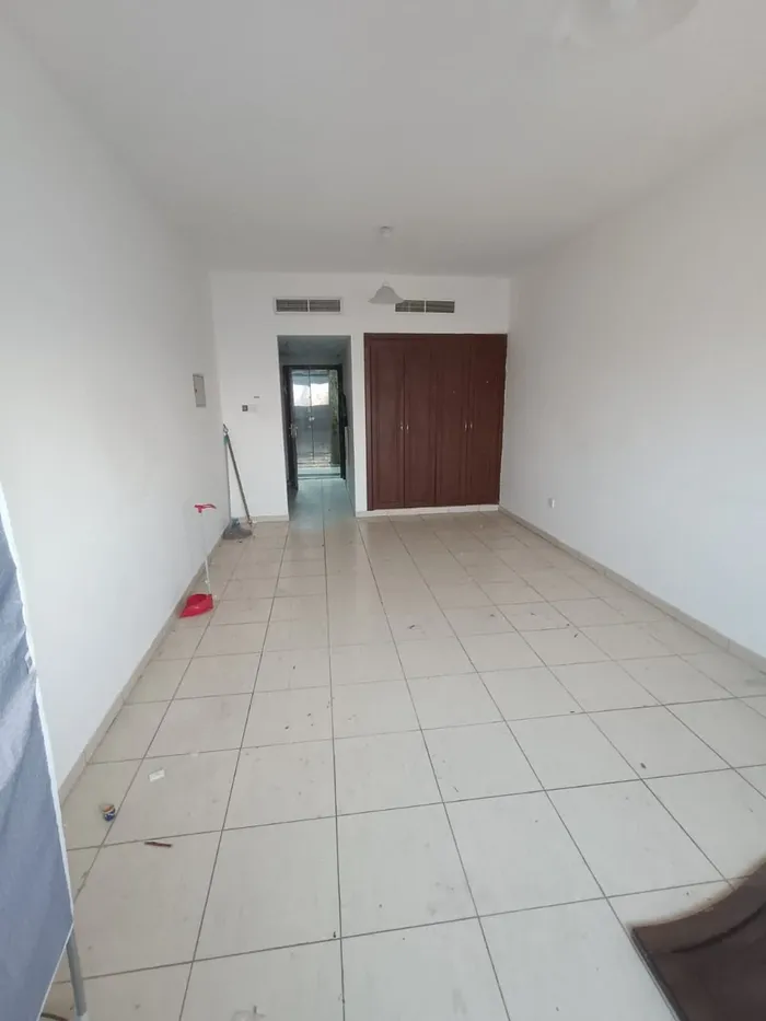 للايجار السسنوي استديو مساحه واسعه مطبخ منفصل خزائن في الحائط قريب من مخرج دبي والشارقه