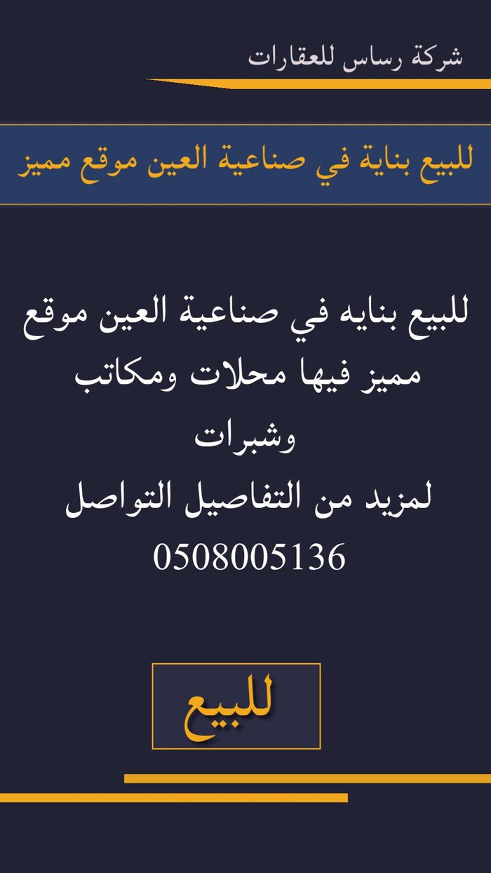 للبيع بناية في صناعية العين فيها محلات وشبرات ومكاتب توثيق مباشر في البلديه