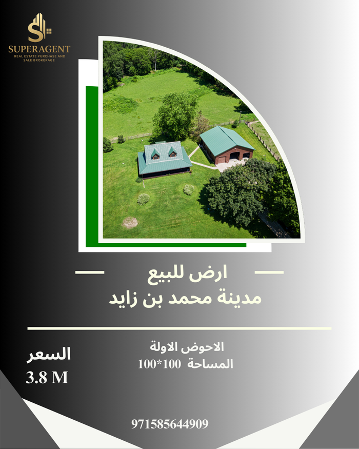 للبيع ارض في مدينة محمد بن زايد موع ممياز 100*100