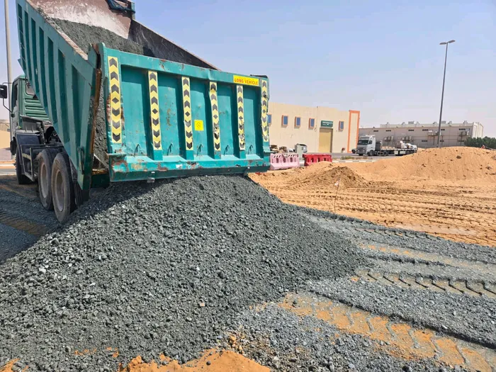 تجري الآن أعمال الرصف بالطريق الموجود أمام الأرض تملك حر لجميع الجنسيات لمدة 99 عام